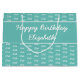 Säg "Grattis på födelsedagen" med detta mångsidiga teal- och vita party-tema som är perfekt för alla åldrar, från småbarn till hundraåringar. Det är lämpligt för pojkar, flickor, manar, kvinnor, och särskilt för dem som firar milstolpe-födelsedagar. Den enkla grafikdesignen har ditt åldersnummer upprepat i ett sammanhängande, sömlöst mönster i bakgrunden, medan ord "Grattis på födelsedagen" och namn skrivs ut på framsidan. Om du vill anpassa designen användor du den medföljande textmallen för att lägga till meddelande, händelse, namn, inledande eller monogram. Dessa väskor är ett underbart sätt att lägga till en personlig beröring när det är ge en speciell gåva till vänner eller familj. Den mångsidiga utformningen gör den lämplig för tillfällen, oavsett om det är ett personligt firande eller ett affärsevenemang, där du behöver visning ett nummer från 0 till 999. Ändra bara texten så att den matchar händelsens nummer.