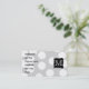 Denna design har en svart splat att forma och vitmonogrambrev, på ett mönster av vitfläckar på ljust - grått. Det initiala brev kan vara personligen. En rolig monokrom design.