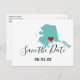 Anpassningsbar färg Alaska karta, med en sparad datumutformning. Anpassa för att matcha paletten bröllop färg. Berätta för dina vänner och din familj var bröllop ligger med en hjärttextsymbol som du kan flytta. Både det moderna och elegant kalligrafteckensnittet stilar är anpassade. Du kan zooma in på Alaska-grafiken om du vill att fokus ska ligga mer på södra centrala Alaska.