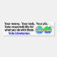 Dina pengar. Ditt förkroppsliga. Ditt planet. Ta ansvar för vad du gör med dem. Rösta en som tror på läran om viljans frihet.