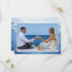 Bröllop Tacksamhetskort med ditt eget favoritbröllopsfoto ramad av en blå ton sur ton målad randig design med en silverkant. Vacker för ett nautiskt eller strandbröllop Tacksamhet eller för ett blått bröllop.