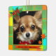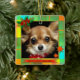 En julgranskula med en söt bild av en chihuahua eller ditt eget anpassade foto, inramad av ett färgrikt rutigt mönster med jultema.
