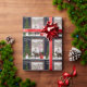 Personligen är papprare för jul. Använda mallen för att överföra ditt eget foto. Vinterscenen med en verggrön träd, snögubbe, renar och svalg. God jul i silver grått-skriptteckensnitt.