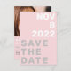 Ange tonen för firande med det här djärva och moderna Spara datumkortet, som innehåller tydlig typografi över en ren rosa. Markera ett favoritfoto för personlig beröring, medan stora fet bokstäver ser till att namn och bröllop får en bra bild och att gästerna hålls välinformerade. Det här öga-meddelandet ger snyggtens elegans och roligt. Ett idealiskt sätt att låta närstående veta om din speciella dag.