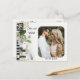 Elegant Spara datumkortet med ett eget favoritfoto som är framtaget av ett temat för musik med ett gitarr och tangentbord och guld stiliserat musik noter. Ett underbart vit ros är färdigt. På baksidan finns en lätt texturerad oformaterad bakgrund i samma benvita elfenben färg som framsidan. Det här Spara datumkortet ingår i en samling i bröllop.