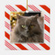 Med denna julprydnad kan du lägga till en anpassningsbar foto av ditt sällskapsdjur tillsammans med en röd jordgubbsdesign i candy cane. Fira ditt husdjurs första jul eller memorera dem för alltid med denna vackra prydnad.