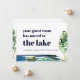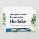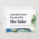 Om du är flytta till ett sjö eller en vattenfront hemma, så säger det här nya adress kortet historien med en vattenfärg sjö, docka och vid träd. Texten på framsidan är i fet mörk blått typografi (färg i vatten) och lyder "Ditt gästrum har flyttat till sjö." Du kan byta "sjö" till "strand" och få samma effekt med texten. All exempeltext på kortets framsida och baksida kan enkelt revideras med dina personliga hälsning- och kontaktuppgifter.