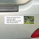 Bumper Sticker med frasen "Om du äger ditt hus och din gård gör du som du vill med hela ditt hjärta". Med ett foto av en vagn, blommor och en buske.