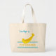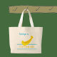 En nyttig stor väska som du kan anpassa med vilken namn som helst, dekorerad med en stor gult banan och ord TOP BANANA på framsidan, med blå och grönt rand ovanför och nedanför ord. Roligt och söt samtidigt, lämplig för vem som helst. Varför inte vara toppbananen? Det här är tillräckligt stort för att du ska kunna ta med dig alla dina behov till kontoret eller handla.