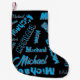Ditt namn mönster mongram blå svart färg liten julstrumpa