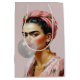 Diva med blommigt scarf som blåser bubbelgummi
