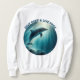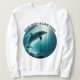 Ett delfinvatten med solstrålar som filtrerar genom vatten. Orden "Dive deep, live free" står ovanför bilden. En underbar tröja med inspirerande budskap. Innehåller generativ innehåll.