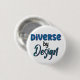 En typografisk stift som säger "Diverse by Design" i blått och grönt för att främja medvetenhet om och acceptans för den neurologiska mångfalden.