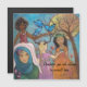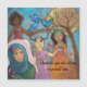 Bilden kommer från min ursprungliga målning: "Du behöver inte le här." Jag ville skapa en allomfattande och mångsidig målning av unga kvinnor som samlas och stöder varandra. Ett säkert ställe där ingen behöver le och låtsas vara lycklig kan man vara sig själv och finna stöd och komfort.