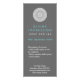 Ett rackkort som är säkert att få uppmärksamhet. En doftliknande ornament ritar in tittaren i mitten av detta kort med hjälp av en ren typbehandling som antyder en serenomgivning. En söt turkos används på baksidan med dekoratet upprepat två gånger i en lätt genomskinlighet. Kort för säljfrämjande åtgärder för perfekt av salon eller spa, en massageterapeut eller hälsa-professionell eller en detaljhandelsbutik som fokuserar på gåvor, kläder eller tillbehör. Finns i alternativ färg med matchande produkter. com com com