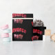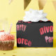 En skilsmässa i party med party-grafik med röd skilsmässa på svart bakgrund.