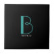 DIY Large Monogram & Namn, Teal/White Text, Black Kakelplatta