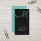 DIY Monogram, Elegant, Svart marmor & Teal Visitkort