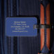 Anpassa ditt namn i guld och monogram i svart på trendig Guld Box med svart gräns på djupblå bakgrund. Kontaktinformation på baksidan. Klicka på Anpassa om du vill ändra färg och ange stilar
