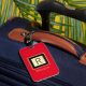 DIY Namn & Monogram, Black & Guld Box, Red Bagagebricka