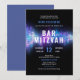 Denna eleganta och moderna Bar Mitzvah-inbjudan har ett DJ-tema eller dansfesttema med färgglada ljudvågsljus på en mörk bakgrund. Designen är livlig och iögonfallande. Detta kort tilltalar alla åldrar och är perfekt för att inbjuda gäster att fira med din familj en Bar Mitzvah-firande som är rolig, ung och väl sammansatt. Det kommer att sätta tonen för en minnesvärd Bat Mitzvah-ceremoni och fest.