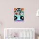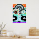 DJ Turntable with vinyl Music albums record for disk jockey with färgad circles and bollar pop art.