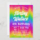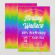 Gör ett djärvt uttalande med denna livfulla regnbågs-chevron födelsedagsinbjudan! Det slående sicksack-mönstret i ett spektrum av färger skapar en energisk och rolig bakgrund för alla födelsedagsfiranden. Anpassa med ditt barns namn, ålder och festdetaljer för en oförglömlig händelse.