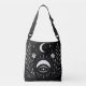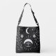 Denna slående svart-vita design blandar mystisk symbolism med naturlig elegans i en balanserad, symmetrisk komposition. I dess centrum finns ett stiliserat öga, som utstrålar linjer av ljus eller energi, vilket antyder insikt, intuition eller upplysning. Ovanför ögat sitter en halvcirkel - möjligen representerar en uppgående eller nedgående sol - flankerad av en halvmåne och fyra stjärnor, vilket förstärker det himmelska temat.