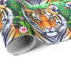 En djärv och livfull tigerunge i tät tropisk blommande djungel.