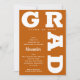 Ordet GRAD i fet vit bokstav kröker runt kanterna på dessa brända orangea examensannonser. SE HELA KOLLEKTIONEN av förberedda färger, pappers tallrikar, servetter och mer i vår kollektion. Om du inte ser dina skol färger, skicka oss ett meddelande.