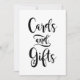 Leda gästerna till presentbordet med denna iögonfallande skylt med "Kort och presenter" i djärv, uttrycksfull brush script. De slående svarta bokstäverna på vit bakgrund skapar ett rent, modernt utsmyckningsobjekt som passar perfekt med vilken bröllopsstil eller färgpalett som helst. Ett enkelt men effektfullt tillägg till din mottagningsdekor. All text är helt anpassningsbar.
