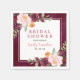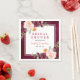 En rik burgunderbakgrund med en vit ram visar "Bröllopsdusch"-bokstäver omgivna av frodiga akvarellblommor i rosafärgad, orange och djupröd på dessa dramatiska bröllopsservetter. Brudens monogramnamn och evenemangsdatum i kalligrafi fullbordar designen. En slående accent för en höstbröllops bröllopsdusch eller brudlunch. Finns även i ytterligare servettfärger.