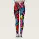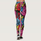 Ett djärvt maximalistiskt mönster med ljusröda, rosa och blå blommor, elektriskt gröna blad och grå gotiska accenter täcker dessa ljusa leggings.