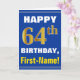 Denna enkla födelsedag-themed hälsningkortdesign presenterar en varm födelsedagwishnågot liknande "den 64th FÖDELSEDAGEN för LYCKLIG, förnamn!", på bekläda i djärv text på en blått färgade bakgrund. Födelsedagen numrerar har en look för faux-/efterföljdguld-något liknande färgläggning. Namn på bekläda kan skräddarsy. Insidan presenterar ett födelsedagmeddelande som kan skräddarsy. En något liknande för hälsningkort detta kunde vara en roligt långt som levererar födelsedagönskemål till någon som firar deras sextio fjärde födelsedag. [~Z0000278]