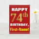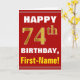 Denna enkla födelsedag-themed hälsningkortdesign presenterar en varm födelsedagwishnågot liknande "den 74th FÖDELSEDAGEN för LYCKLIG, förnamn!", på bekläda i djärv text på en röd kulör bakgrund. Födelsedagen numrerar har en look för faux-/efterföljdguld-något liknande färgläggning. Namn på bekläda kan vara personligen. Insidan presenterar ett födelsedagmeddelande som kan skräddarsy. En något liknande för hälsningkort detta kunde vara en roligt långt som levererar födelsedagönskemål till någon som firar deras fjärde födelsedag för sjuttio. [~Z0000276]