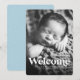 Djärvt välkomstblått vertikalt födelsekort meddelande