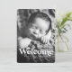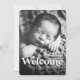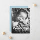 Ett djärvt välkomstkort i vintage-stil mot ett vertikalt foto är ett sött och stilrent sätt att presentera ditt nya barn. Med plats för namn och statistik på framsidan med fotot, är baksidan av detta födelsekort prydd med prickar i en söt, dammig ljusblå färg (färgen kan ändras genom att klicka på "anpassa"). Perfekt för coola nya föräldrar att presentera sin nya lilla flicka med en touch av modern vintage-chic!