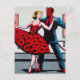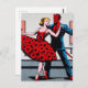 Djävulen Dances Med en kvinna i en röd Blommigt Vykort