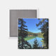 En ljus och vacker sommarmorgon med sol som lyser på Djävulen Sjö grönt vatten. SW of Bend, Oregon, längs Cascade Sjöar Scenia Byway. Foto taget sommaren 2018.
