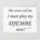 Rösterna säger att jag måste spela min Djembe nu! Har ni röster i huvudet som säger att ni ska praktisera ert instrument, eller att ni måste utföra det? Rösterna kan komma kom från din lärare eller regissören, eller från dig själv, och säga att du måste träna för att få fram all talang du har!