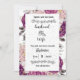 Fira din speciella union med denna lyxiga och romantiska bröllopsinbjudan med en vacker blomsterkant. Designen visar en elegant ram utsmyckad med djupa plommonfärgade, rika lila och mjuka rosa vattenfärgspaeonior och rosor.