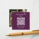 Gör din RSVP-process på bröllopsdagen smidig med vårt svarskort med QR-kod. Detta kompakta anpassningsbara kort har modern vit text på en djup plommonfärgad bakgrund. Framsidan har ett anpassningsbart textfält och en plats för att generera en unik QR-kod så att gästerna enkelt kan svara via sina smartphones. Gå till alternativet "personalisera", lägg till webbadressen till din bröllopswebbplats i det angivna området, så genereras en QR-kod på designen just för dig. På baksidan kan du lägga till ett personligt touch med ett foto. Gör din speciella dag ännu mer minnesvärd med detta snygga och funktionella bröllopsbilaga.