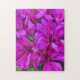 Min originalkonst pryder detta vackra blommiga pussel, bestående av mitt ursprungliga fotografi av djuprosa geraniumblommor i en trädgård, stiliserat med en akvarellteknik för ett konstnärligt utseende.