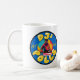 Vår klassiska logotyp på ett klassiskt mugg med både manliga och kvinnliga DJ:er.