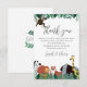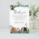 Det här söta djungelsafari-djuren baby shower tack-kortet kan anpassas med ditt tackmeddelande, namn och initialer på baksidan, i elegant modern typografi. Designad av Thisisnotme©