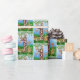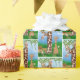 Afrikansk safari-scen i giraffe och apa med gräskhut för första födelsedag