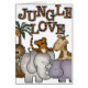 Lurar vem kärlekdjungeldjur och den safari ska fröjden i att ha på sig detta oh så gullig djungelkärlekT-tröja som presenterar en elefant, en flodhäst, en giraff, en tiger och ett lejont, tillsammans med leopardrandtext!