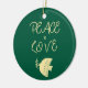 Detta prydnadsföremål på en djup grönt med en förenklad fredsduva och ett budskap om fred och kärlek har en julkänsla, ett positivt budskap och en elegant av riken. Det finns plats för ditt eget foto, och året på framsidan och baksidan är fredsmeddelandet och kärlek och den enkla duvgrafiken. Konstruktionen är minimalistisk, modern, snyggt och elegant. Dessa fotodekorationer är ett perfekt för att bygga en familjetradition av ge mor- och farföräldrar och familjemedlemmar varje år. Utsmyckningarna kommer sedan att kom ut varje år och skapa en gång genom det förflutna när familjen växer och förändras.