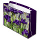 Glamorize dina presenter med den här stora stil-presentsäcken som innehåller fotobilden av en trädgård av vackra, djupa lilor Irises. Bag trim färg är mörkens lila. En underbar, blommigt design! Välj din presentväska stil.