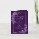 Skapa en fantastisk och modern bröllopsupplevelse med denna djupvioletta allt-i-ett vikt bröllopsinbjudan med eleganta violetta akvarellblommor, förfinade guldförgyllningar, ett anpassningsbart fotområde och en inbyggd QR-kod för svar.